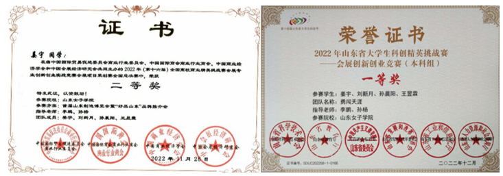 作为山东省唯一的公办会展本科,会展专业在人才培养中将服务山东会展强省建设作为根本目标,在课程建设、专业实践、论文选题、学科竞赛中聚焦山东省展览、会议、节事、文博、赛事等领域,培育出一系列优秀成果。第四届全国高校商业精英挑战赛会展文案(大型活动人群管理方案)创作竞赛于6月12日圆满结束,2021级会展专业学生策划的第三届潍坊国际海洋动力装备展、第108 届全国糖酒商品交易会等三个大型活动人群管理方案获得了全国二等奖。此外,会展学生完成的“好客山东·好品山东品牌推介会”“百里骑行,以爱之名”“中国造·正当潮”等一批有家国情怀、社会责任感的高质量策划不断涌现,先后在高校商业精英挑战赛(会展专业创新创业实践竞赛)、全国大学生红色旅游创意策划竞赛、山东高校会奖旅游大赛、山东省会展行业创意设计竞赛等各类学科竞赛中获奖。由学生独立策划、运作的“红色旅游讲解大赛”“红旅中国·红色旅游讲解比赛”等活动在校内已连续举办多届,参赛选手讲思政的实践育人模式在学校官网、学习强国等媒介报道宣传,具有较高的社会辐射性。