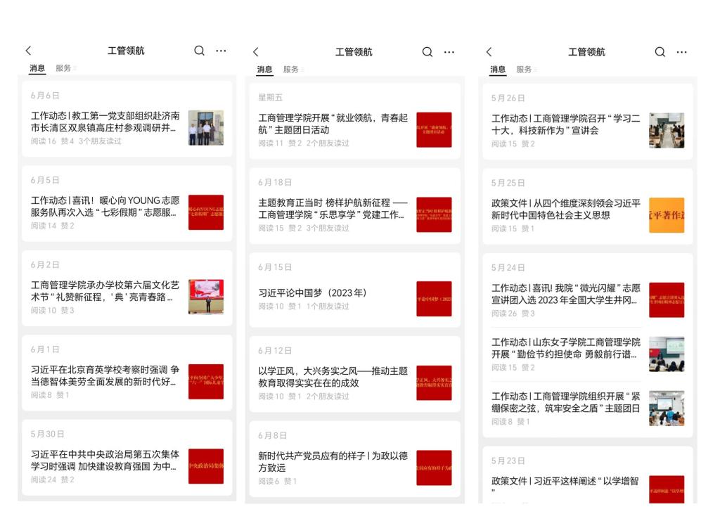 “e路同行”党建工作坊。建设运营“工管领航”微信公众号、开展“习语铸魂”主题活动、加强学生网络素养教育、引导学生党员积极参与学院舆情处置工作流程,充分发挥党员先锋模范作用,增强了思想政治工作的时代感和吸引力。