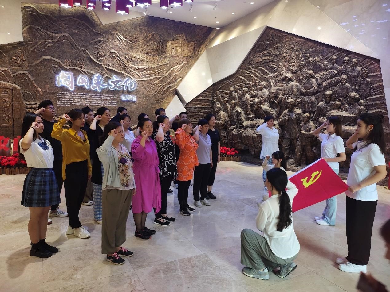 面向鲜红的党旗,全体党员举起右手,重温入党誓词。入党誓词,字字千钧,回荡在每个党员的心中,激励党员们牢记初心使命,坚定理想信念,踔厉奋发,勇毅前行。